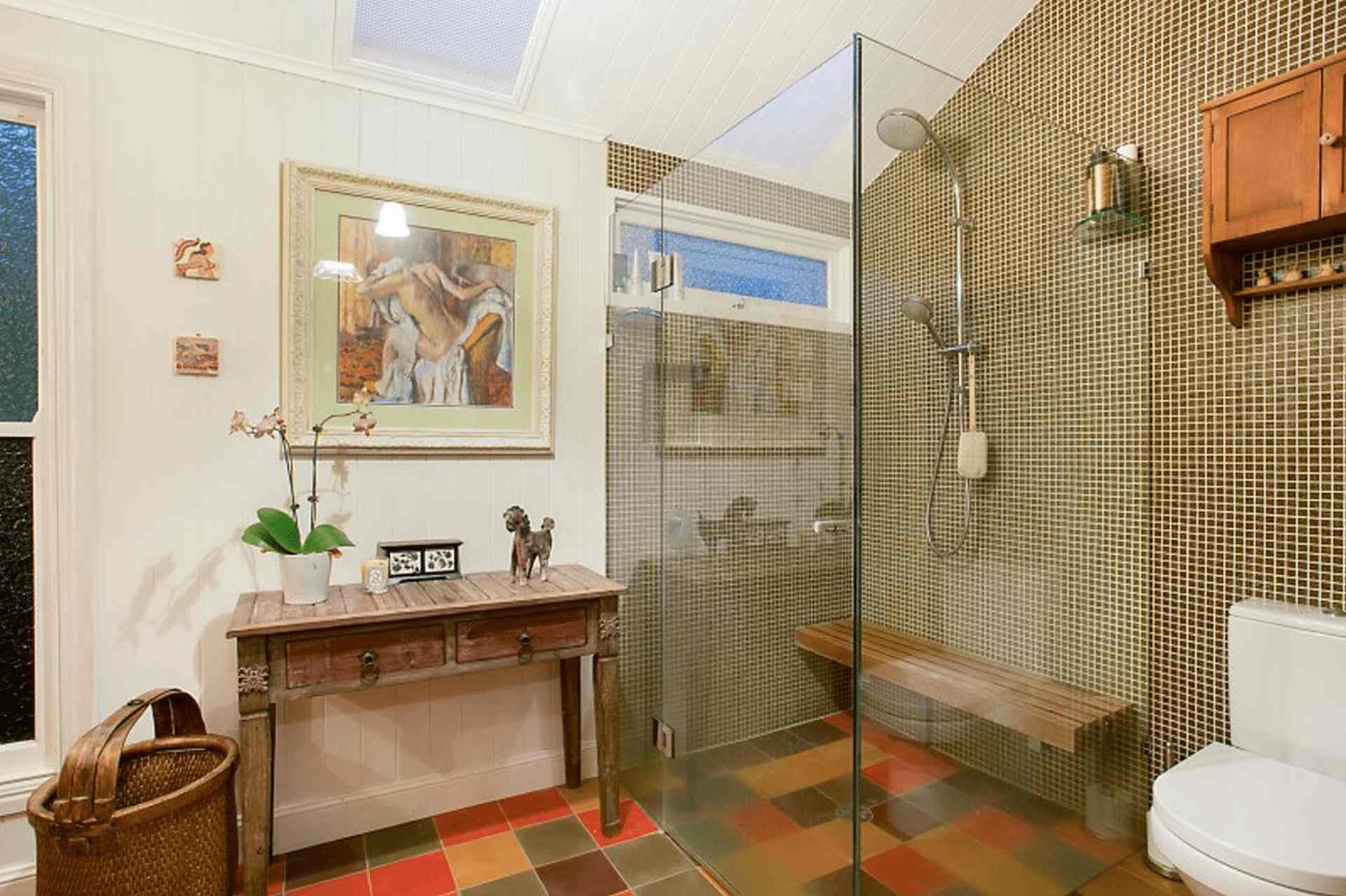 Indooroopilly is a 100 year old residence which was extended to the pool with new bedroom and deck to above and the renovation of 2 additional bathrooms. Some features in this project were imported Argentinian antique tiles and Burmese Teak shower floor.